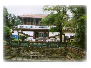 樓後方有梅花型的鳥亭,飼有孔雀。